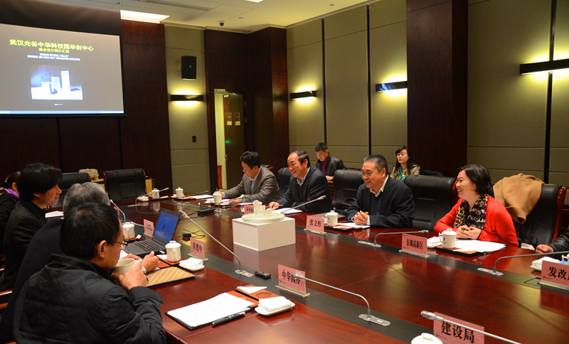 ;11月11日,东湖高新区管委会主任张文彤在武汉会议中心听取华创中心概念设计方案中期成果汇报。会议由东湖高新管委会巡视员、中华园办主任孙茜雯主持,贝氏建筑事务所进行方案汇报。市外侨办副巡视员王捷、中华园办综合党委书记、副主任张晓玲,市外侨办、发改局、规划局、建设局、重点办、中华园办、龙泉街道、滨湖街道、中华投相关领导及负责人参会。
