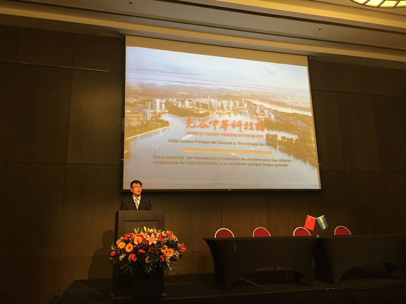 4月13日上午,“中国武汉——阿根廷经贸合作洽谈会”在阿根廷首府布宜诺斯艾利斯成功举办,湖北省委常委、武汉市市委书记阮成发、中国驻阿根廷大使杨万明,阿根廷—中国生产及工商业协会主席carlios;pedro;spadone等领导和嘉宾出席了会议并致辞,来自阿根廷政府和工商界、企业代表,华商侨领,商会代表及媒体近400余人参加了会议。中华园作为武汉市重点推荐的企业代表,在会上进行了专题宣传推介。重点向阿方企业、华侨华商及侨商协会介绍了光谷中华科技园的投资环境、规划设计、产业方向、政策优势等基本情况,重点推介了今年即将动工建设和启动全球招商的“华人华侨创新创业中心”、以及环牛山湖绿道及文化旅游带等项目,引起了与会嘉宾和驻阿华侨华商的广泛关注。期间,张晓玲副主任还与阿根廷华人进出口商会会长袁建平先生、阿根廷华侨华人联合总会主席陈瑞平先生、阿根廷浙江总商会会长包伟将先生等华人企业、商会代表进行了深入对接,探讨了在中华园建设开发南美风情园及文化旅游项目的可行性,同时诚挚邀请阿根廷华侨华商参加今年6月份在武汉举办的第十六届华创会,并赴中华科技园考察参观。