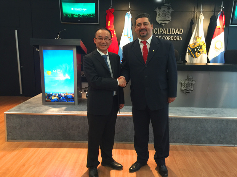 4月10日,代表团一行赴武汉市友好城市科尔多瓦参加了双方城市友好合作交流洽谈会,受到了科尔多瓦市政府秘书长roberto;m.yalovetzky先生的热情接待,同时与阿根廷中华工商企业联合总会徐万寿先生等当地华侨华商代表进行了交流和洽谈。