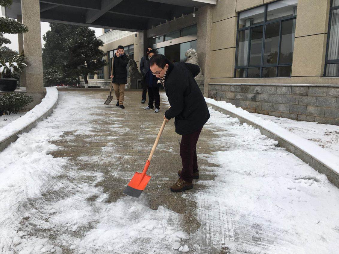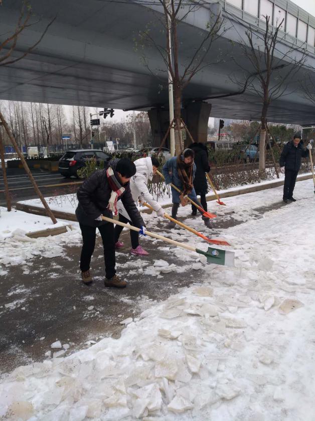 ;降雪发生后,集团公司自元月27日开始,全体干部职工取消休假,组织开展各园区内部及周边道路铲雪除冰工作,集团公司董事长张晓玲、总经理江中平赴现场亲自挂帅,各部门分管领导、所属企业主要负责人现场靠前指挥,即时统筹调度,紧急安排部署,全面应对处置,大家不畏严寒,冒着飞雪战斗在除冰铲雪第一线。集团公司及各所属企业共出动300余人次,机械、人工铲雪和撒盐融雪相结合清除15条主次干道、人行道积雪,确保各所属企业、园区管辖范围内道路畅通,确保居民生命财产安全,确保正常工作生活秩序,全力打赢融雪保畅攻坚战!